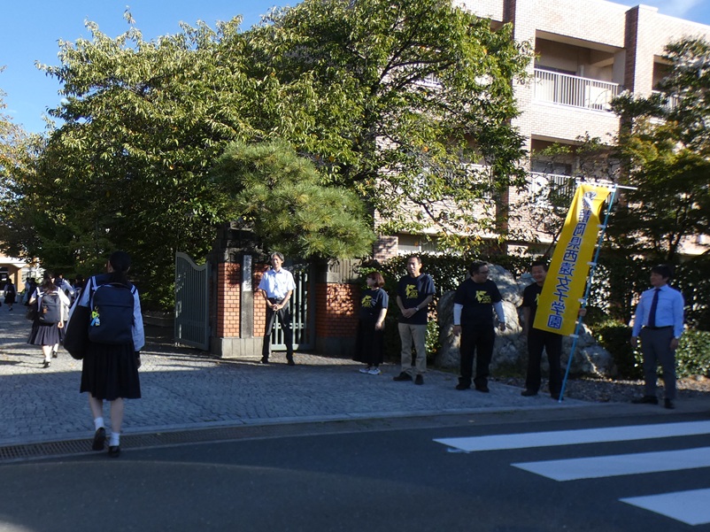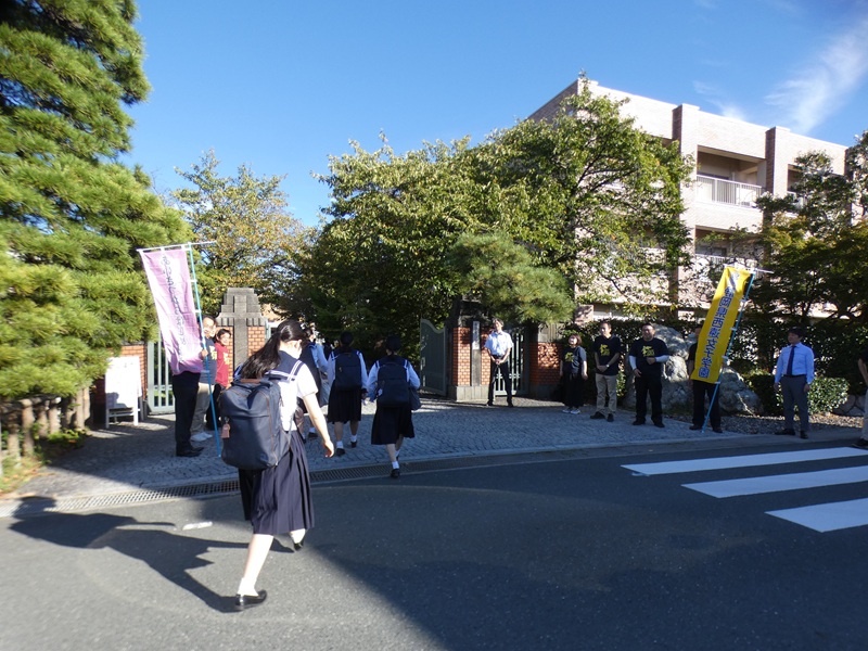 PTAの常任理事&理事の皆さんが、朝の正門と西門に立ってくださいました。今日は、毎年9月に西遠で実施しているPTA活動「朝の声かけ運動」の日です。