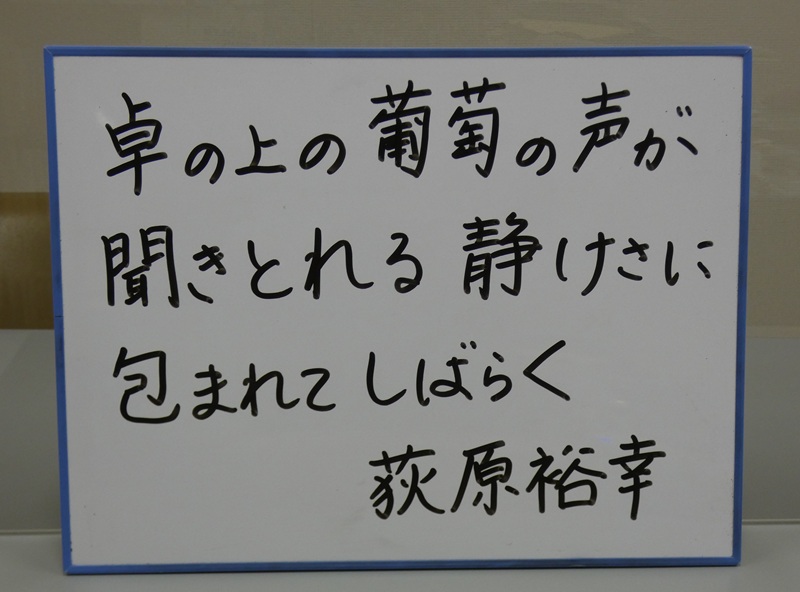 葡萄(ぶどう)のおいしい季節ですね。秋には、静けさも似合います。誰もいない食卓の上にある葡萄、その声が聞き取れるぐらい静かな静かな時間が流れています。その空間に身を置くことができる幸せを、作者も静かに静かに味わっているのでしょう。