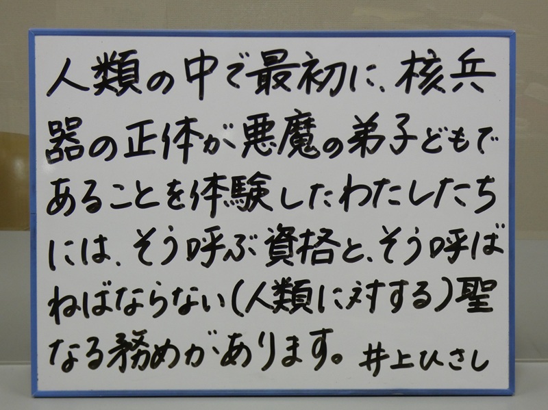 人類の中で最初に、核兵器の正体が悪魔の弟子どもであることを体験したわたしたちには、そう呼ぶ資格と、そう呼ばねばならない(人類にたいする)聖なる務めがあります。