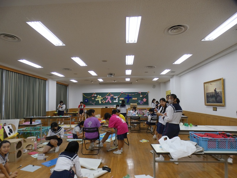 今日は、学園祭終日準備第1日。朝から、全校放送→机と椅子の移動→係集合→ついたて運搬→HR展・部活店などの準備作業という、体力をたくさん使う一日でした。