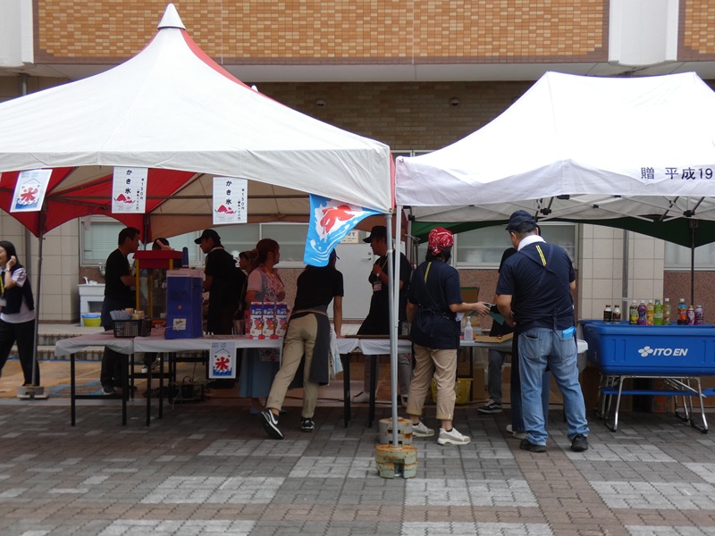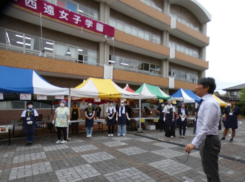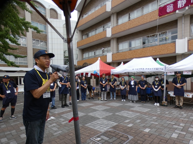 PTA模擬店の皆さんも、朝の挨拶。生徒以上に元気に!という掛け声で始まりました。