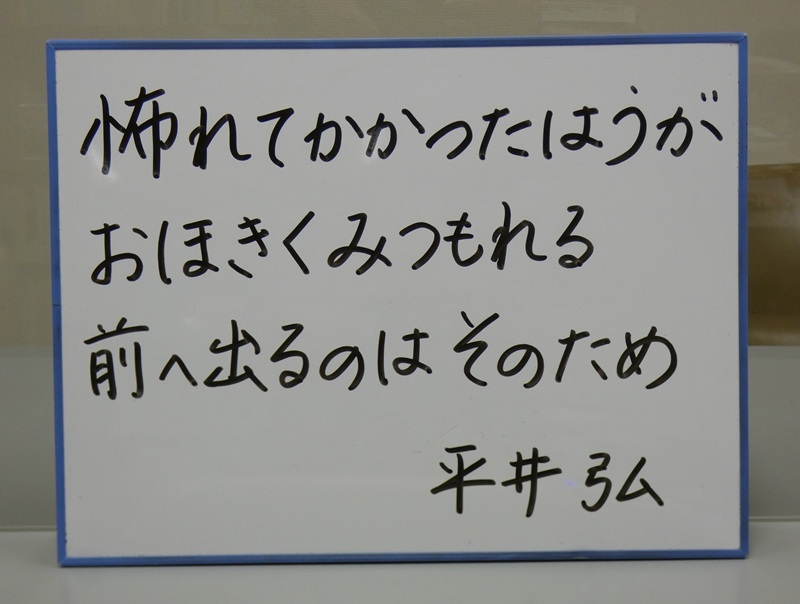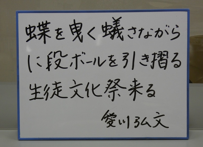 おととしの学園祭前にも、この短歌を掲げました。段ボールを曳いていく生徒へのいとおしさが感じられて、大好きな短歌です。学園祭が間近に迫ると、西遠にもこんなけなげな姿の生徒が増えます。