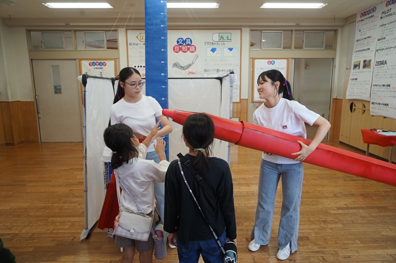 制作物は、巨大なペンと消しゴムと定規(この辺では昔から「せんひき」と呼んでますが方言ですね…笑)です。ペンのふたを取ったり、消しゴムに触ったりすることができ、制作へのこだわりが伝わりました。