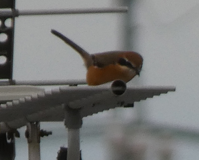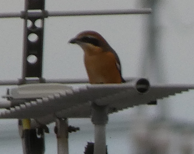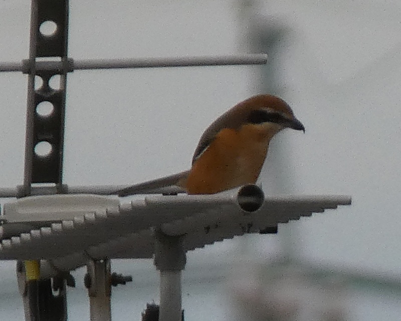 家の二階から偶然飛んでいく鳥を見つけてカメラで追ったらモズでした。ラッキー!