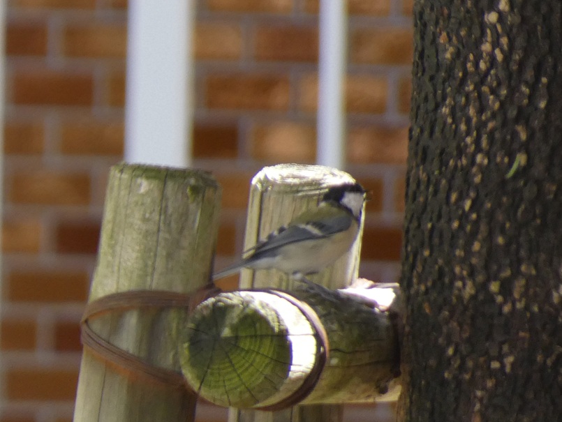 学園の休日。シジュウカラがいました。ベンチに座って遠くから撮影。