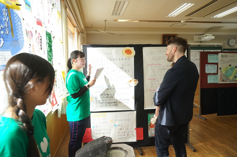 2日目、外国人審査員としてご来場くださったジャロさんにも、英語で丁寧に説明します。ジャロさん、たっぷり時間をかけて見学・審査をしてくださいました。