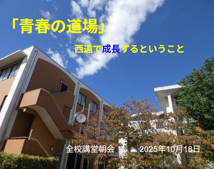 後期最初の講堂朝会は、役員認証式に続いて、「青春の道場 西遠で成長するということ」と題して行いました。