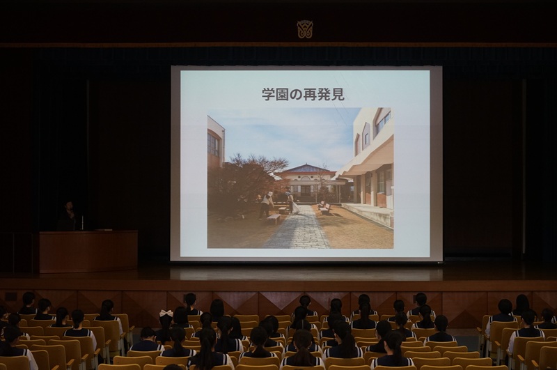 最初に映画「ストロベリームーン」特別上映会を通じて、自分たちの学園がいつもと違う形で目の前に現れ、学園の再発見をしたこと、映画を作るのにどれだけの人々が動いているのか考えさせられたことなどを話しました。