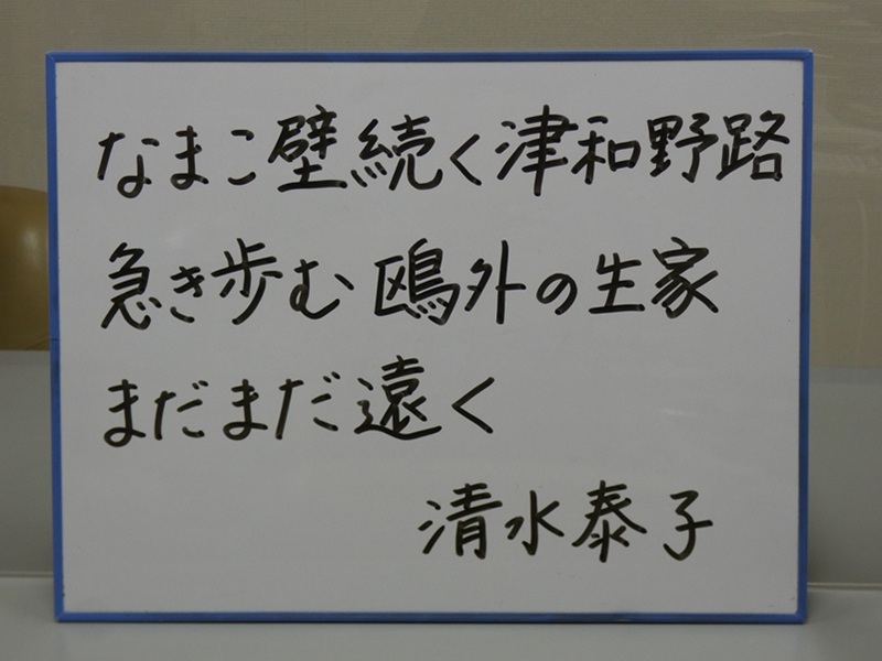 となったら、この短歌、今日出すしかない!と思い、津和野路を鴎外の生家へと向かう道のりの遠さ(ほんとに結構長く歩きました!)を思い出しながら、この短歌を白板に書きました。
