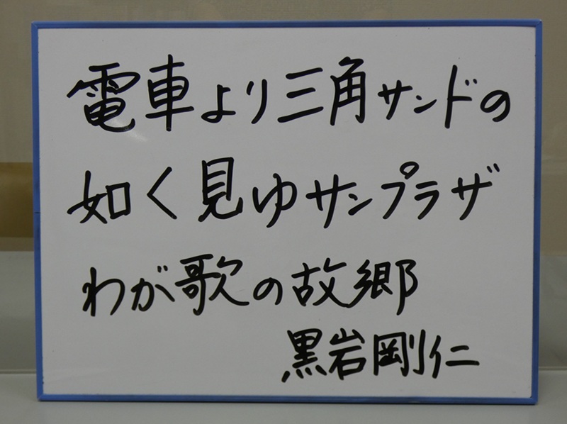 電車より三角サンドの如く見ゆサンプラザわが歌の故郷