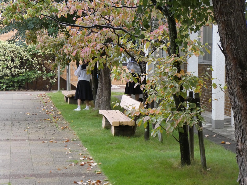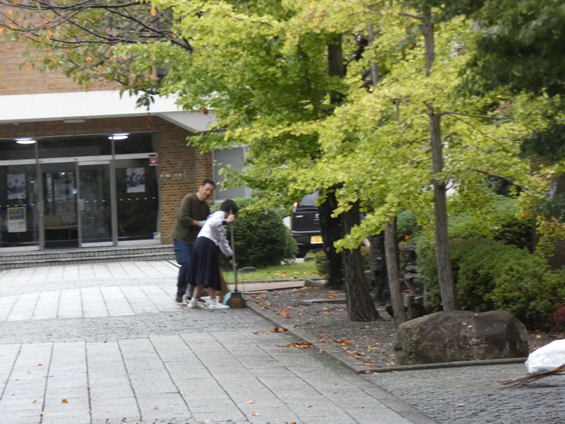 秋の落ち葉を、バレー部員と用務員さんが朝から掃き集めてくれました。ありがとうございます。