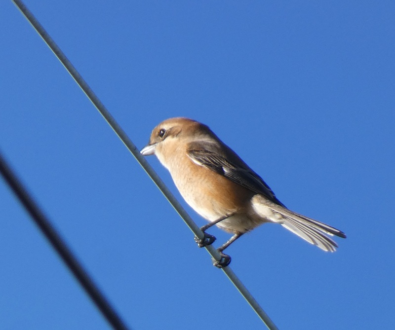 今朝は、モズが来ていました。学校でモズの写真が撮れたのは1年ぶりでしょうか。朝日を浴びて、凛々しいお顔です。