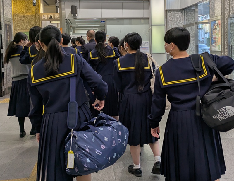 元気いっぱいの中学生だけではなく、高校3年生の中には、最後まで夏服で頑張るという夏服大好き派もいます。6年間あるいは3年間の思いを込めて31日まで着るのでしょう。風邪ひかないでね、と思いながら、若い彼女たちを見守ります。