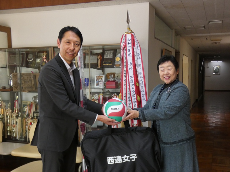 ご寄贈くださいましたバレーボールとアンテナは、体育館で、授業や中高バレー部の練習で大切に使わせていただきます。