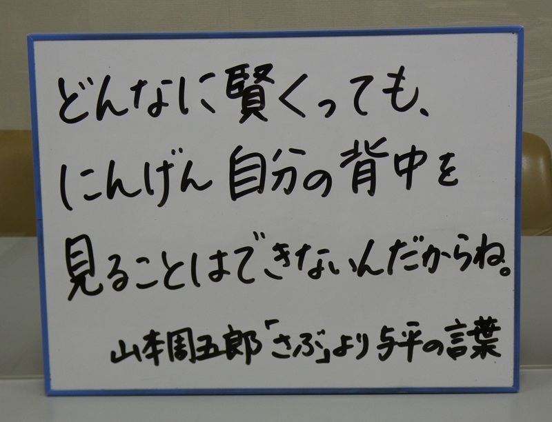 中学講堂朝会でも紹介した名文です。私はこの言葉に高校1年生で出会い、それからずっとこの言葉をかみしめています。山本周五郎という作家の温かさを感じるセリフです。