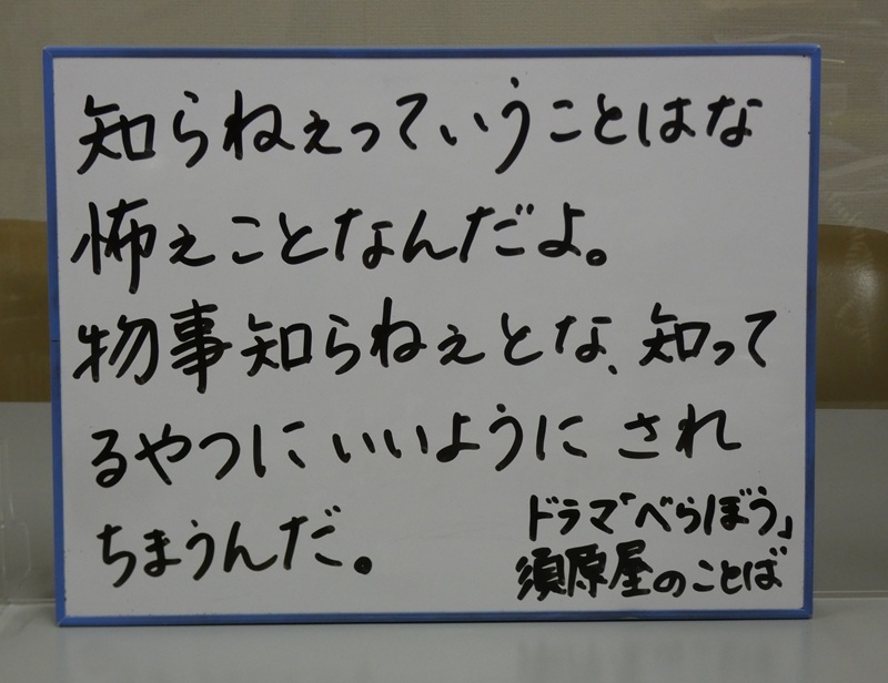 知らねぇっていうことはな 怖ぇことなんだよ。物事知らねぇとな 知ってるやつにいいようにされちまうんだ。