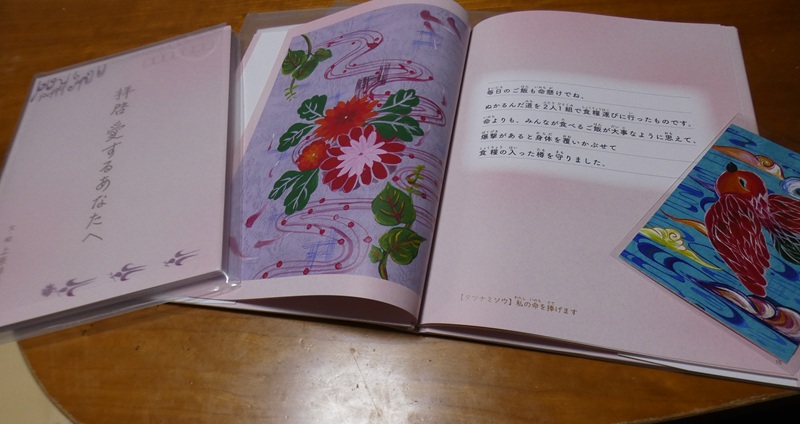 「拝啓 愛するあなたへ」(文・絵 上原姉妹)というピンク色の表紙の大きな絵本です。