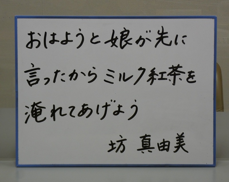 母と子のケンカ後の朝でしょうか。先に娘が「おはよう」と口をきいてきたから、ミルク紅茶を淹れてあげようと思ったお母さん。ミルク紅茶は仲直りの挨拶でしょうか。ミルク紅茶の温かさ、ほんわかする甘さが伝わってきますね。坊真由美さんからプレゼントでいただいた歌集「へしゃげトマト」から紹介しました。坊さん、素敵な歌集をありがとうございました。