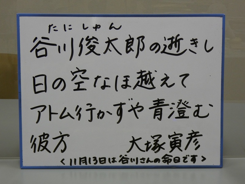 昨年11月13日に亡くなった谷川俊太郎さんの命日、この短歌を紹介しました。谷俊の業績は他分野にわたります。「鉄腕アトム」の主題歌の作詞は、谷川さんでした。