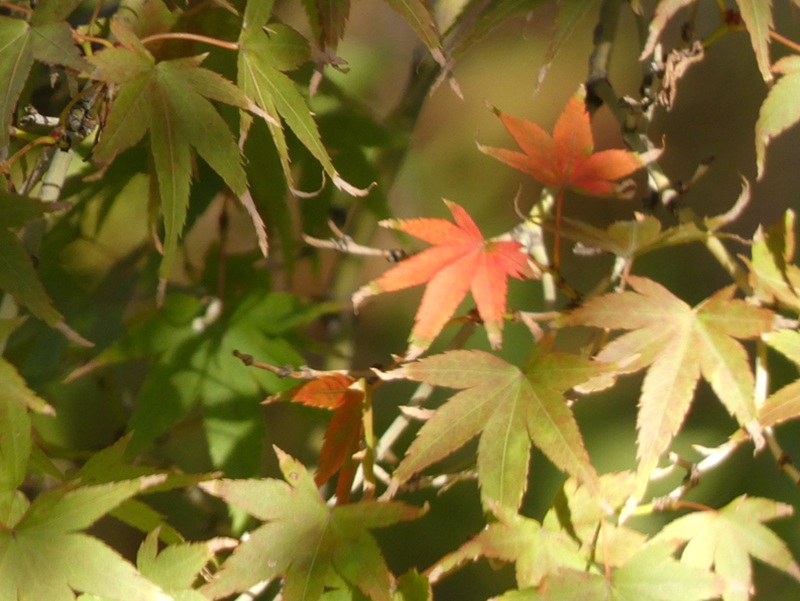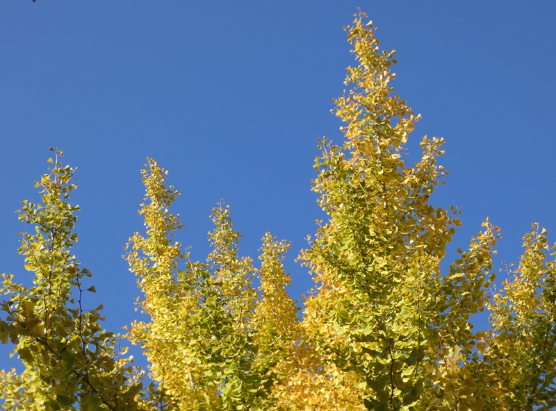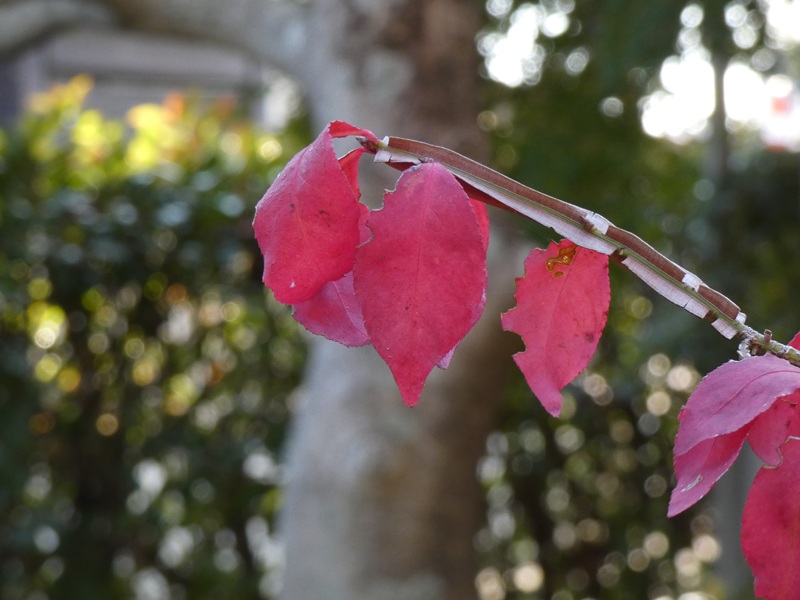 西遠の紅葉状況をお知らせします。イチョウは黄色くなってきました。ニシキギは燃えるような赤。モミジはこれからですね。