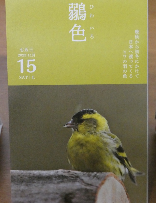 今日の日本の色カレンダーは、「鶸(ひわ)色」でした。カワラヒワの羽の色、いい色ですね。