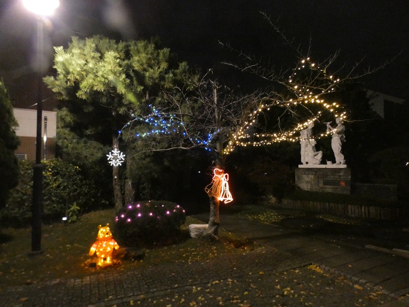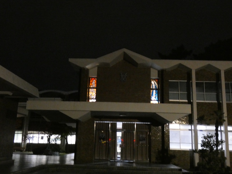 イルミネーション、始まりました! 西遠紹介 2025.11.27 昨日から、西遠正門付近のクリスマスイルミネーションが始まりました! 佐々木松次郎先生の絵によるステンドグラスも灯っています。寒い帰り道に、少しの暖かさを。心がほっこりするような、優しいイルミネーションを皆様もどうぞ。