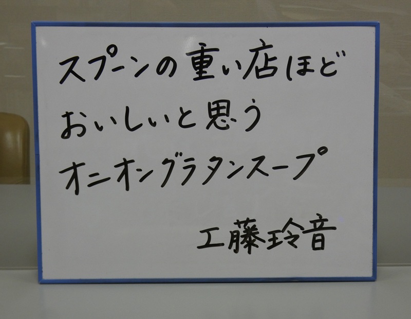 オニオングラタンスープをいただきたくなる短歌。せっかくおいしいお料理が提供されても、スプーンが軽くて安物っぽいなと思われたり、口に入れるときにちょっと痛かったりする(薄い作りだからでしょうか)こと、確かにあります。お店を訪れ、おいしい料理を食べるときに、重いスプーンはある意味「隠し味」かもしれません。