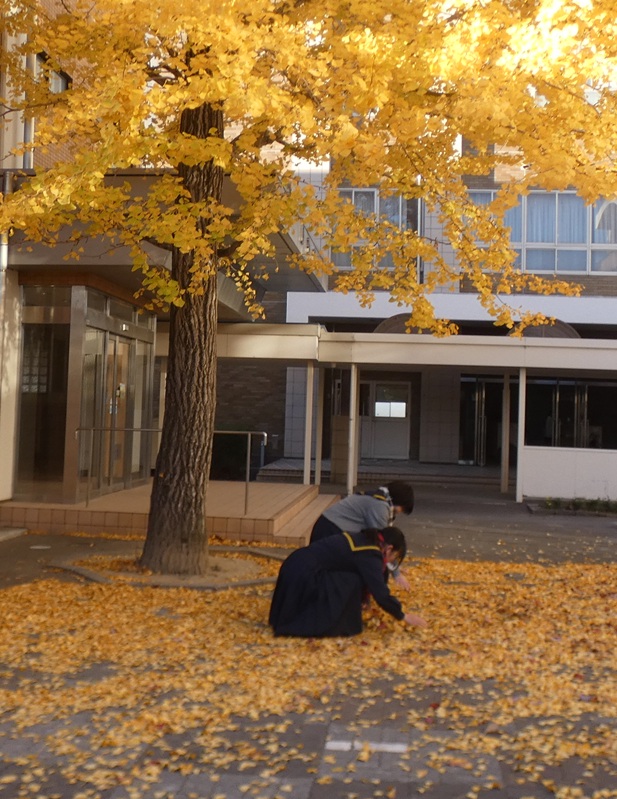 実は、バレー部の皆さんはイチョウ広場と教員室南の落ち葉の掃除を控えてくれています。