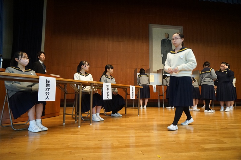18歳で「選挙」デビューする生徒たちに、西遠では浜松市のご協力をいただいて、「主権者講座」を開いています。今年も、講堂にて、「模擬選挙」を中心とした講座が行われ、中3と高1の生徒たちが真剣に授業に臨みました。
