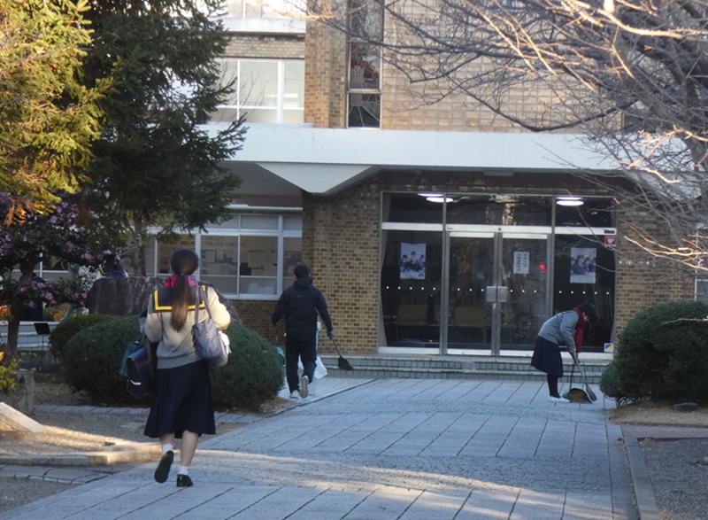 冬の朝の西遠八景 今朝も 西遠紹介 2025.12.18 今朝の西遠を撮影しました。昨日に引き続き、「冬の朝の西遠八景」です。八景もないじゃん、と言わないように。「たくさんの素敵な風景」と受け止めてください。 登校する生徒たち。みんなが近づく前に、ちょっと遠くから撮ってみました。 正門から中を撮影すると、今日もまたバレー部有志が中村先生と掃除してくれています。今日は松の葉を掃いて集めてくれました。 花もきれいです。きらきら歌壇には青系・紫系の花が。 そして、ロウバイは、黄色い花を次々ほころばせています。 少し、寒さが緩んできています。