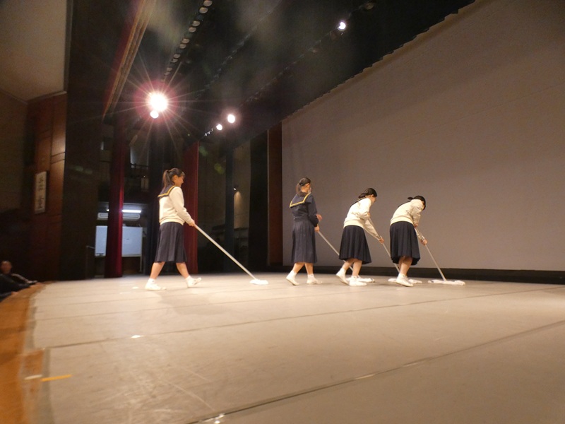 中学1・2年生も、受け付け、案内、舞台のモップかけなどなど、会の裏方として係を担いました。