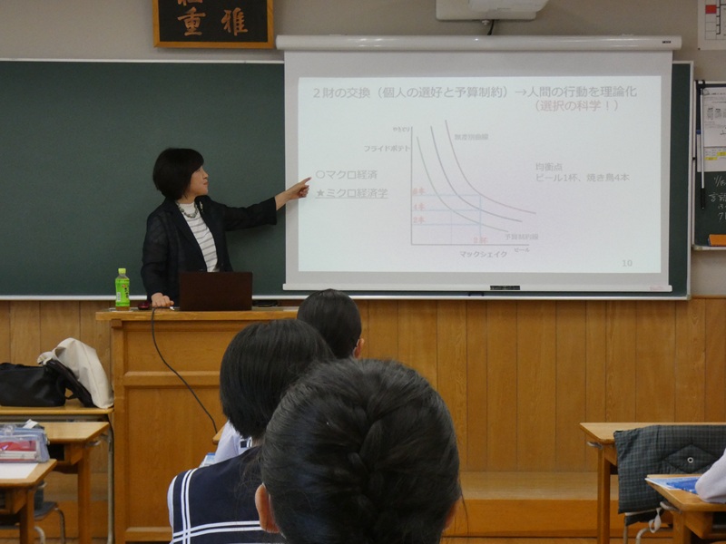 静岡文化芸術大学 文化政策学部 文化政策学科の教授 小林淑恵先生は「社会科学の視点から進路や働き方を考える」というテーマでお話しくださいました。生徒たちは自身の進路を考えるきっかけをいただきました。