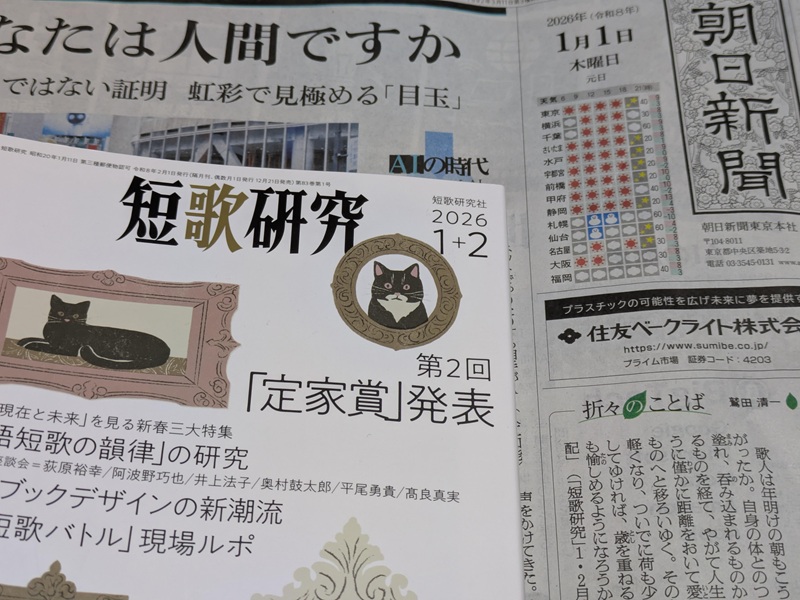 年末に我が家に届いた「短歌研究2026年1・2月号」に「第61回短歌研究賞受賞後第一作五十首」として巻頭を飾ったのが俵万智さんの「気配」。昨年、「白き父」で短歌研究賞を受賞した俵さんの受賞後第一作として掲載された「気配」は、亡きお父様を偲ぶ歌に始まり、生活や恋愛感情を詠んだ歌など読み応えのある五十首でした。その中で気になった短歌として、「小さな白板」の候補に2首書き留めていたのです。