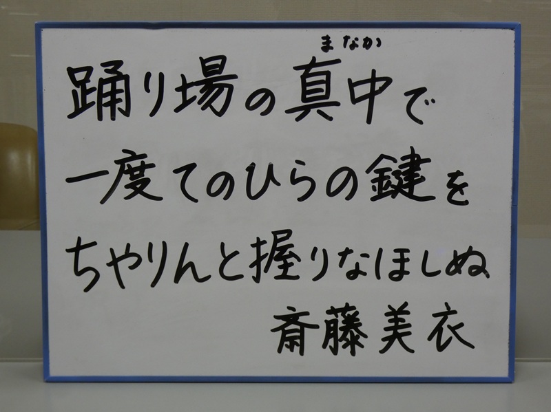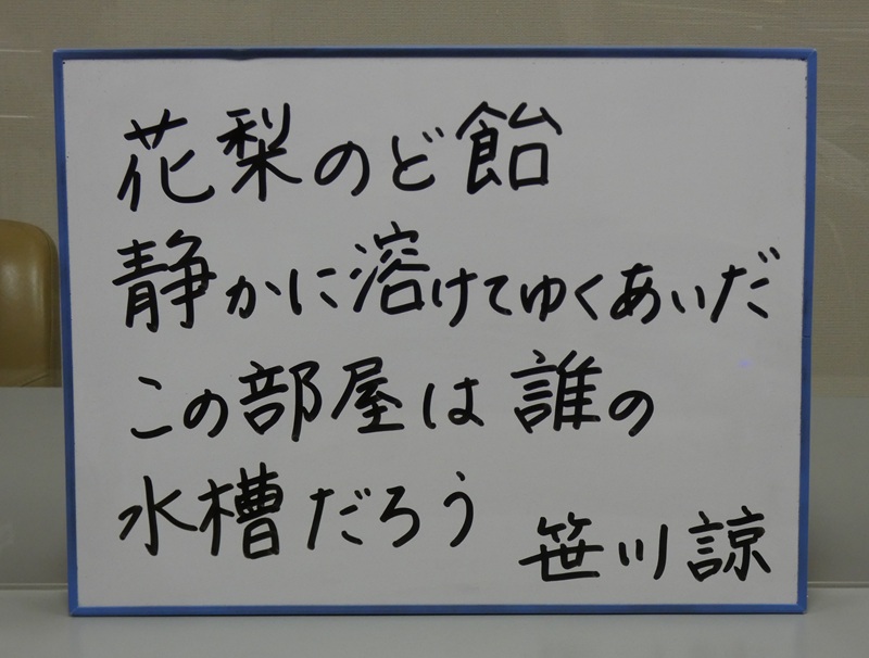 のど飴が溶けていく間、そのじわーっとした感覚を確かめながら、この部屋は「水槽」だ、誰の水槽なのだろう、と想像する作者。飴をなめるだけの些細な行動を、こんなにも繊細に表現できる…その豊かな感性を私も育てたい、とガサツなオオバは思いました。今週の白板は、静謐な世界が多いですね。冬の寒さに似合うのでしょう。