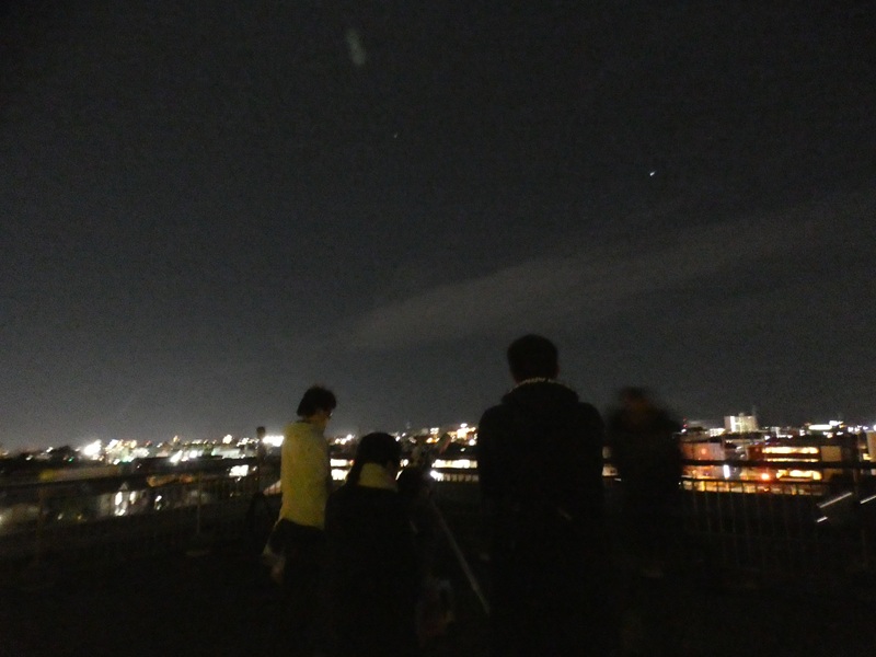 寒さを考慮して、3組ずつ、屋上に上がっていただき、天体観測です。望遠鏡をのぞく時には、寒さを忘れて「あ、見えた!」と嬉しそうな皆さん。
