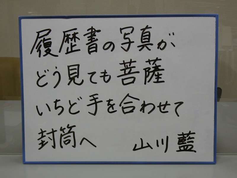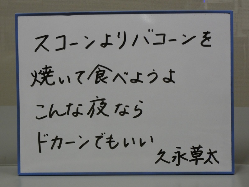 図書館入り口の「小さな白板((ホワイトボード)」、毎日チェックしてくれている生徒がいて、とってもうれしいです!今週は、「少し面白い」「ちょっと変わった」といった短歌を紹介してみました。