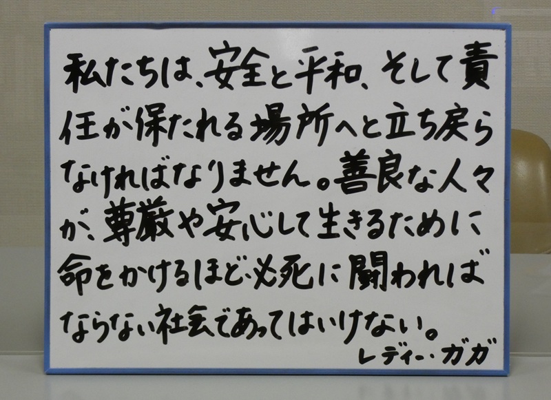 私たちは、安全と平和、そして責任が保たれる場所へと立ち戻らなければなりません。善良な人々が、尊厳や安心して生きるために、命を懸けるほど必死に闘わなければならない社会であってはならない。