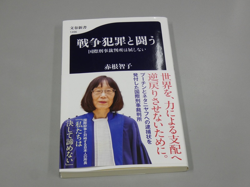 なんて勇気ある女性だろう。初めて彼女を知ったのは、一昨年のことでした。講堂朝会でも「ヨシコとトモコとエリカと憲法」と題して高校生にお話ししました。そのトモコさんがICC(国際刑事裁判所)所長の赤根智子さんです。彼女が書いた決意表明のような新書「戦争犯罪と闘う」(文春新書)を読み、所長になるまでの経緯や、所長としてどういう思いでいるのか、されに、同僚の方々の身に起きている理不尽な弾圧を知りました。また、赤根さんの幼少期からのジェンダーバイアスとの戦いも、興味深かったです。私より5歳年上の赤根さんが、名古屋でどんな小学生であったのか、進学校に進んだときに周囲からどういう反応を示されたのか、さらに東大を卒業し、就職という時にどんな体験をしたのか…、女性の体験する「壁」をいくつもいくつも打ち破ってきた方なのだと心が熱くなりました。