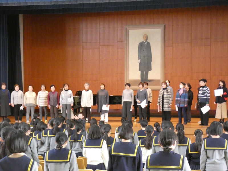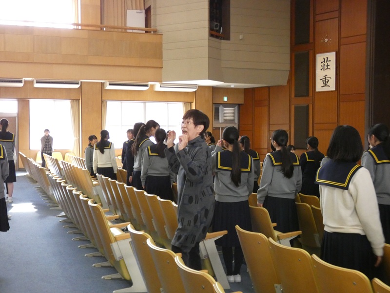 中学生はすでに第2部の合唱の練習を始めています。「歌」に込める思いもまた大切なものです。同窓会長の二橋様やコールリモーネの皆様との発声練習を経て、今どんな気持ちで合唱の練習に臨んでいるでしょう。