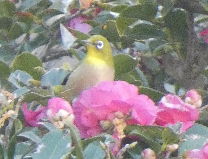 可愛いメジロも登場するこの短歌。似た風景にちょうどこの日出会いました! ちょこまかとせわしなく動き回るメジロがとてもかわいいです。