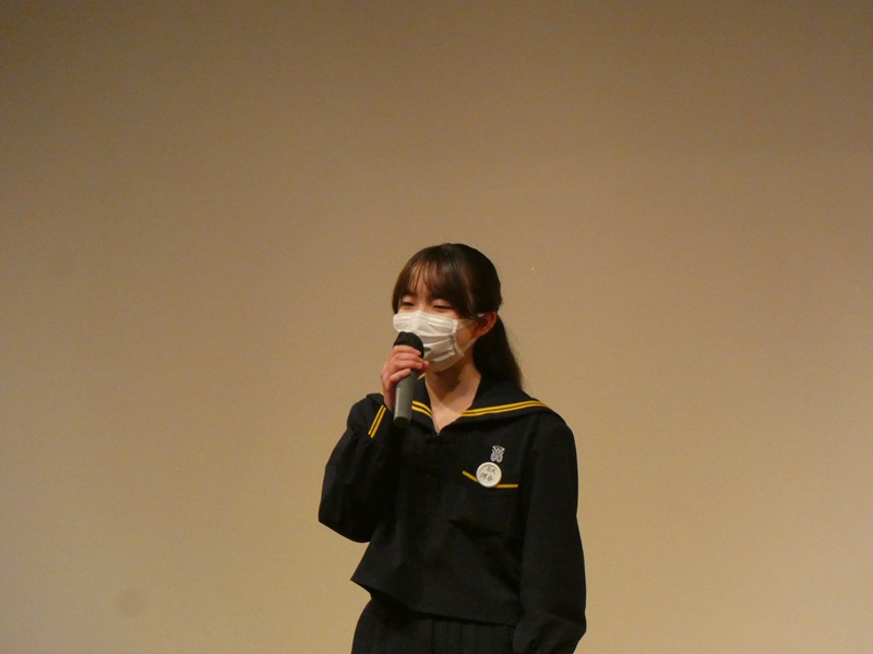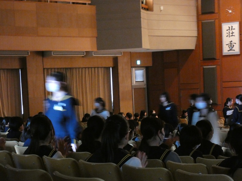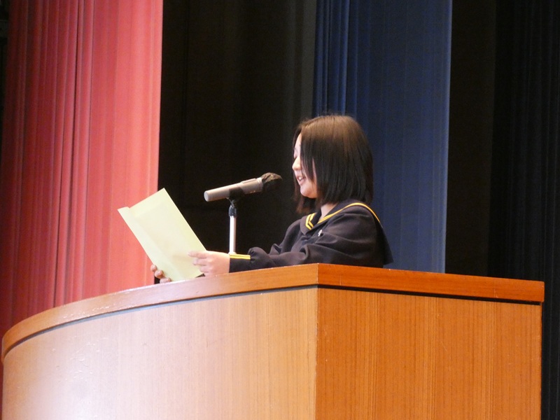 高校3年生の代表が感謝の言葉を述べ、会場の後輩たちの拍手に送られて、高3生が退場しました。