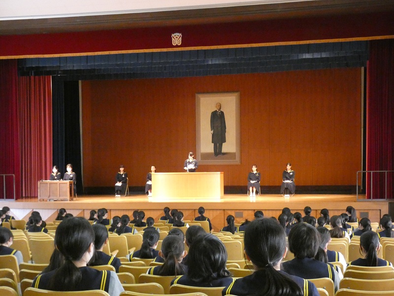 来年度の生徒会長・副会長の候補者が「信条(公約)」を述べる「信条発表会」が、講堂で行われました。