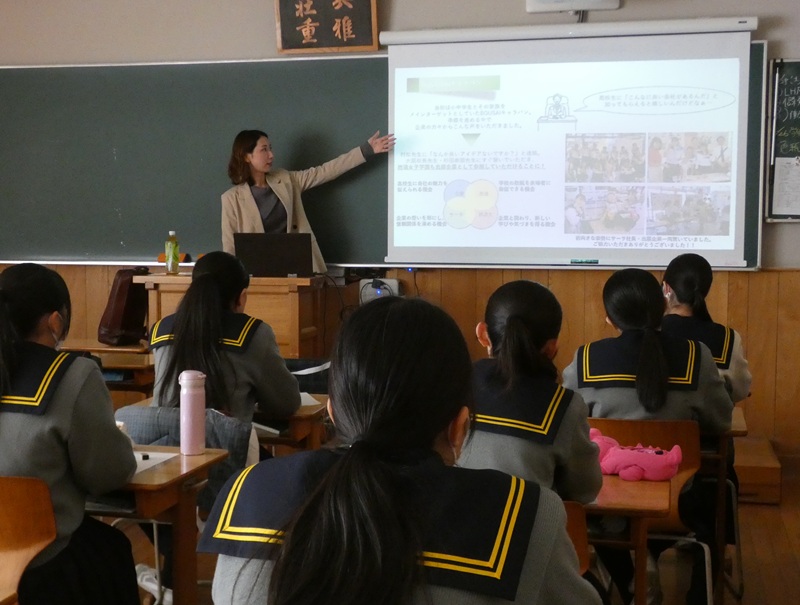 高校2年生は、卒業生の先輩から、それぞれの職業の内容ややりがい、その仕事に至るまでの道のりなどを聞きました。来校してくださったのは、ガス会社勤務、システムエンジニア、言語聴覚士、小学校教諭の4名の先輩。同じ学園で学んだ先輩からのお話に、高校2年生は興味津々です。様々な職業を知ること、社会の厳しさも面白みも知ることで、生徒は確実に未来を拓くための土台を固めています。
