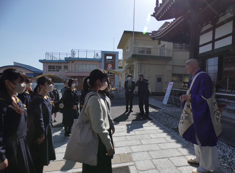 法林寺の和尚様から「西遠生としての誇りをもって巣立ちなさい」と温かい励ましの言葉をもらいました。
