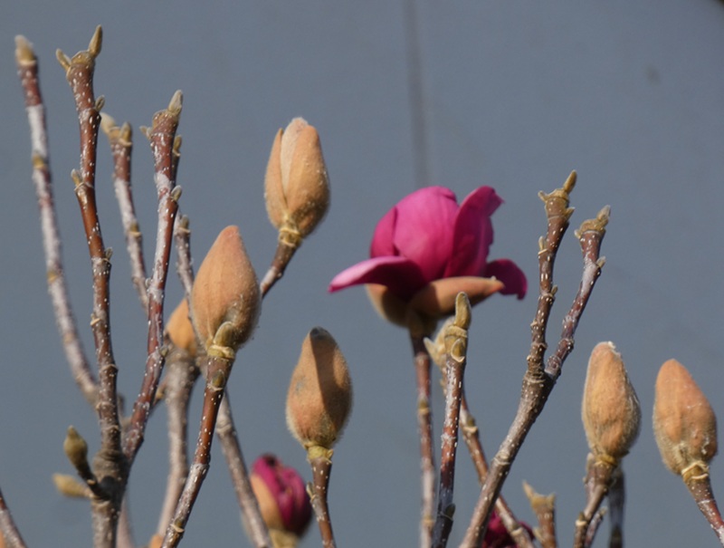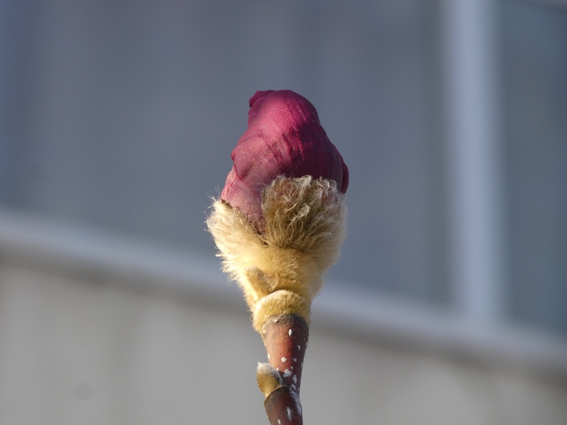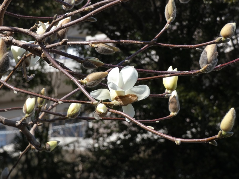 法林寺さんの木蓮の開花に「早いなあ」と思っていたのに、学園に戻ったら、ガールマグノリアが開花していました! 開花、最速ではないかしら?