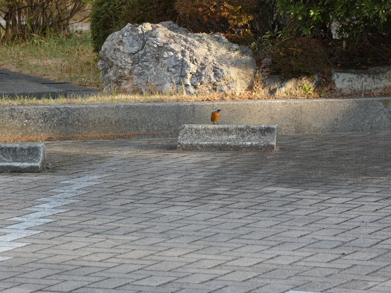 朝、本館前の駐車場の車止めにとまっていたのが、この鳥でした。慌てて撮影!ズームインしますね。