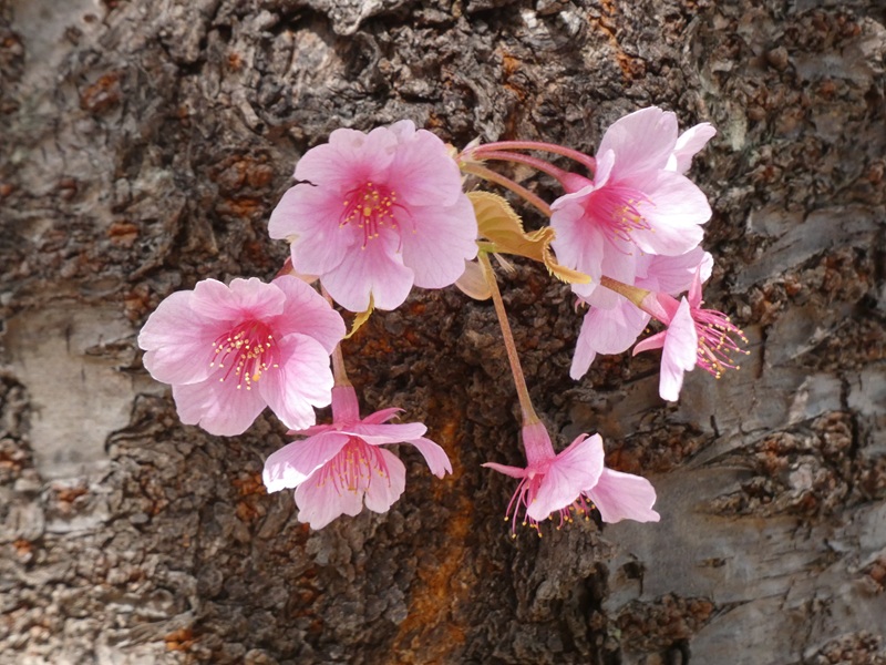 河津桜の幹から直接花が!
