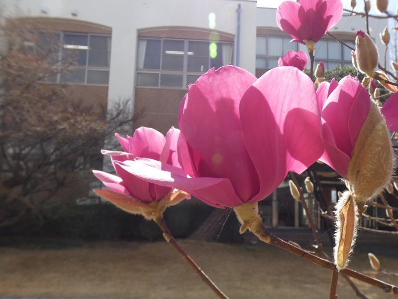 生徒の皆さん、この木に鳥が群れているのを目撃したら、ぜひとも追い払ってくださいね。そして、見事なガールマグノリアの花を愛でてください。