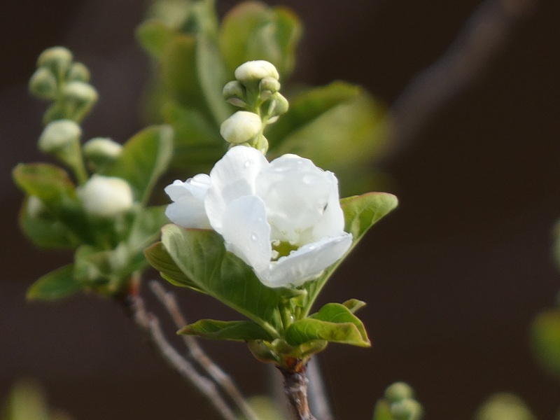 よほどおいしいのでしょうが、花が無残に散らされるのは、悲しすぎます。ヒヨドリめ…。針金で守られている、木の内側のつぼみが無事咲くように願いつつ、ヒヨドリを追い払う日々が続きます。