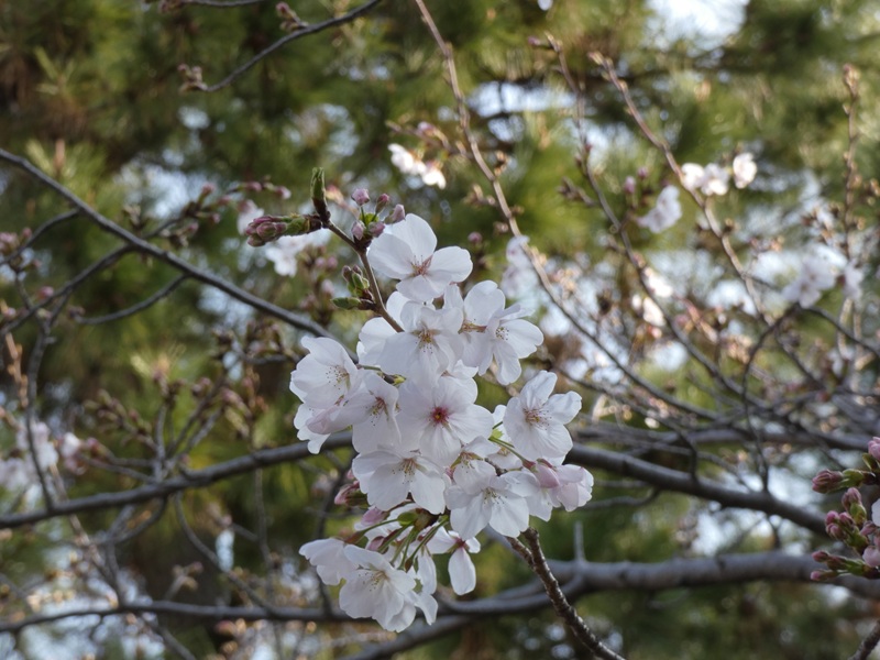 浜松の桜は、暖かさの中でもまだ寝ぼけているようですが、きれいな花を開かせた枝もあり、皆さん上を向いて桜を探してくださっていました。また、枝垂れ桜も開花しました。風もなく暖かな1日となりました。